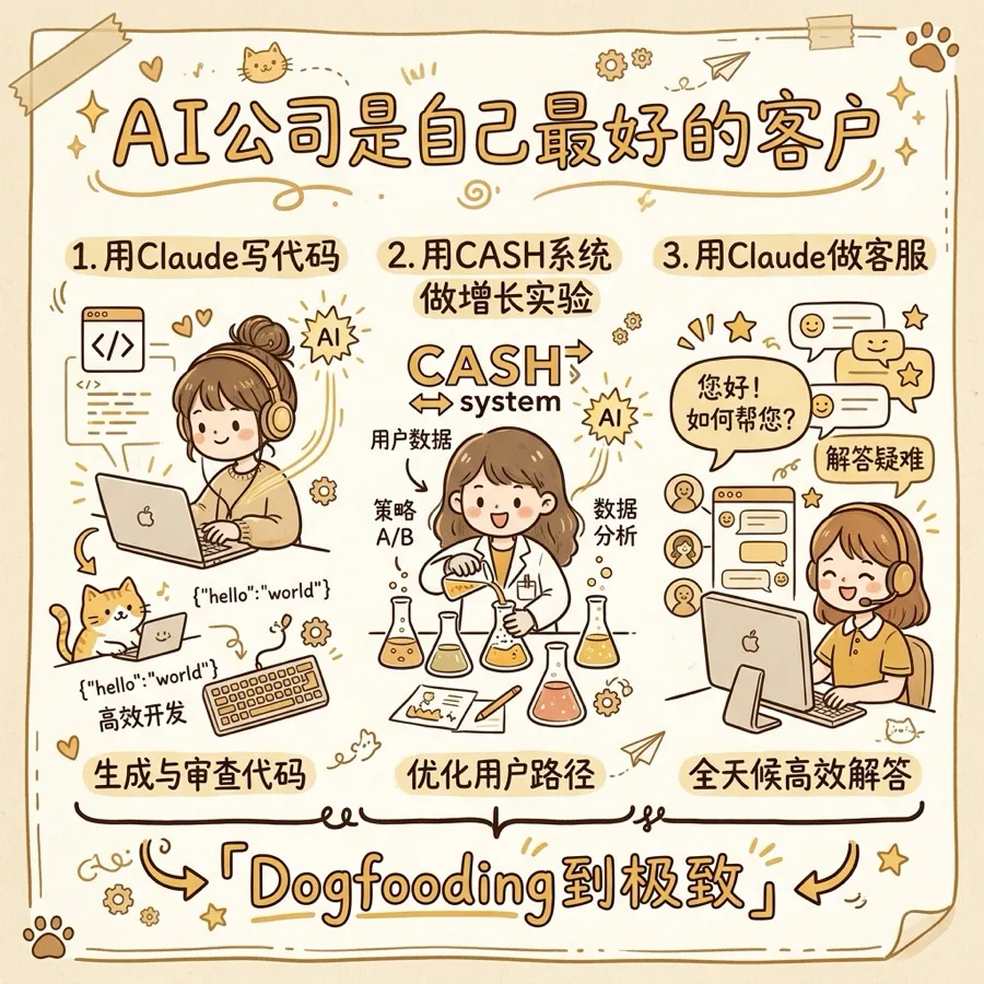 对大部分公司来说,产品能力的提升是线性的,甚至是对数的——边际改善越来越小。但对Anthropic来说,每一代模型的能力跃迁是真实的。在这个条件下,把资源压到「让用户体验到最新能力」上,比打磨漏斗有效得多。